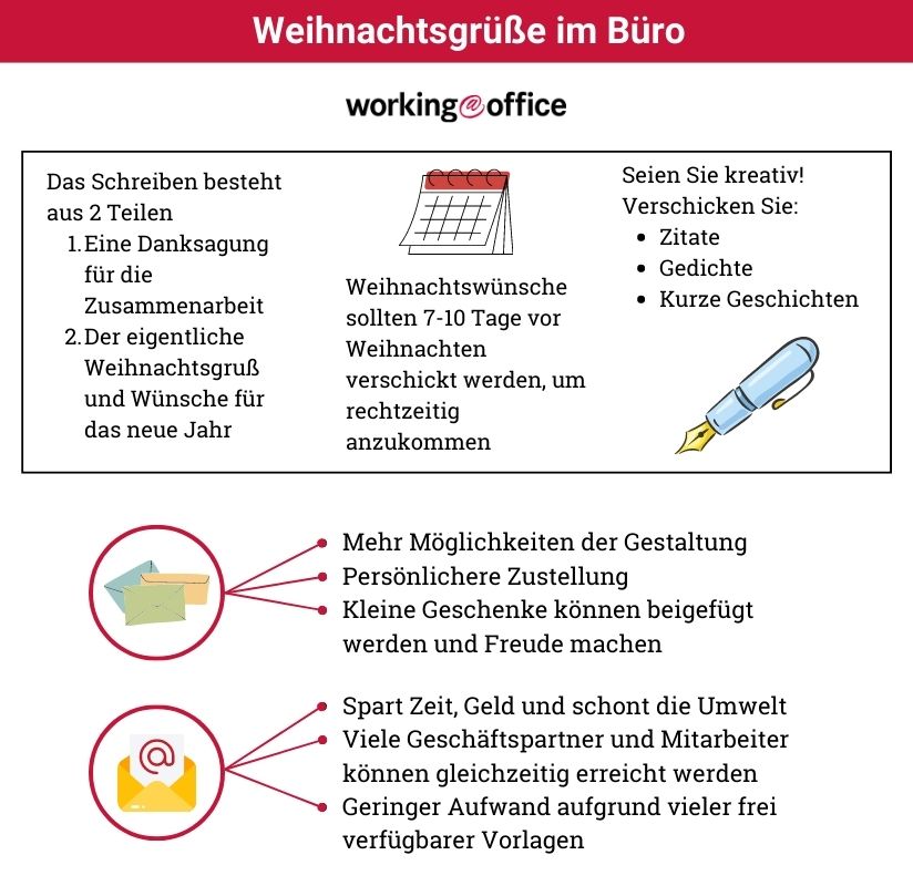 Meistens wird mit der Weihnachtspost gleichzeitig ein Neujahrsgruß versendet, mit dem sich für die Zusammenarbeit im ausklingenden Jahr bedankt wird. Sowohl herkömmliche Grußkarten als auch vorweihnachtliche E-Mails haben Vor- und Nachteile.