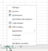 - Klicken Sie mit der rechten Maustaste auf das Arbeitsblattregister ihrer Arbeitsmappe. Es öffnet sich ein Drop-down-Menü, in dem Sie den vierten Punkt: „Verschieben oder kopieren“ auswählen.