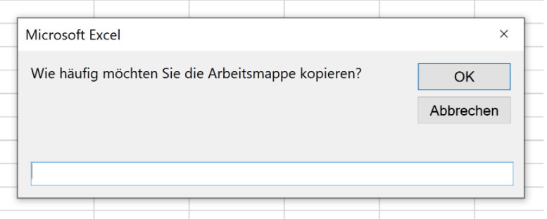 - Drücken Sie die Taste F5 auf Ihrer Tastatur. Das Makro wird ausgeführt und Sie werden gefragt, wie häufig Sie die entsprechende Arbeitsmappe kopieren möchten.