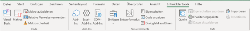 - Navigieren Sie zur Registerkarte „Entwicklertools“ in Microsoft Excel