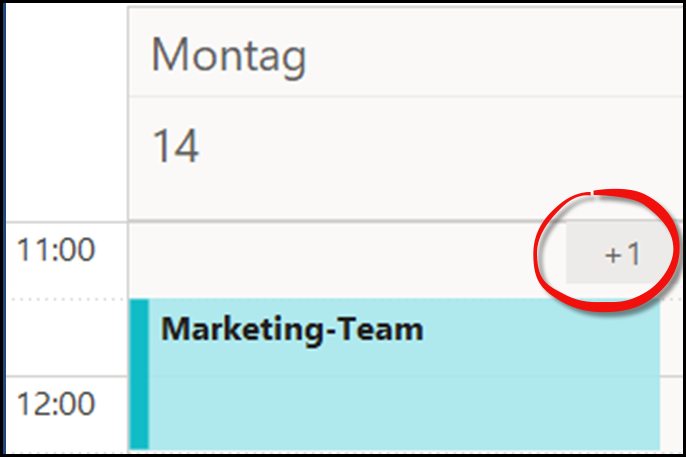 Eine dezente, aber wertvolle Hilfe: Ist das Programmfenster klein und man hat sich durch vorhandene Termine hindurch gescrollt, sieht man oft nur einen bestimmten Ausschnitt des Kalenders. Vorherige oder nachfolgende Einträge liegen somit außerhalb des sichtbaren Bereichs. Outlook macht Sie jetzt praktischerweise darauf aufmerksam, dass es noch mehr Einträge gibt: In der Tagesspalte erscheint am oberen oder unteren Rand des Fensters als Hinweis ein kleines graues Rechteck mit einem Pluszeichen und einer Zahl darin. Die verrät, wie viele Termine gerade außerhalb des momentanen Sichtbereichs liegen. Das Ganze ist mehr als nur Optik: Klicken Sie nämlich auf das Rechteck, versucht Outlook, Ihnen die nicht sichtbaren Elemente anzuzeigen und scrollt automatisch.
