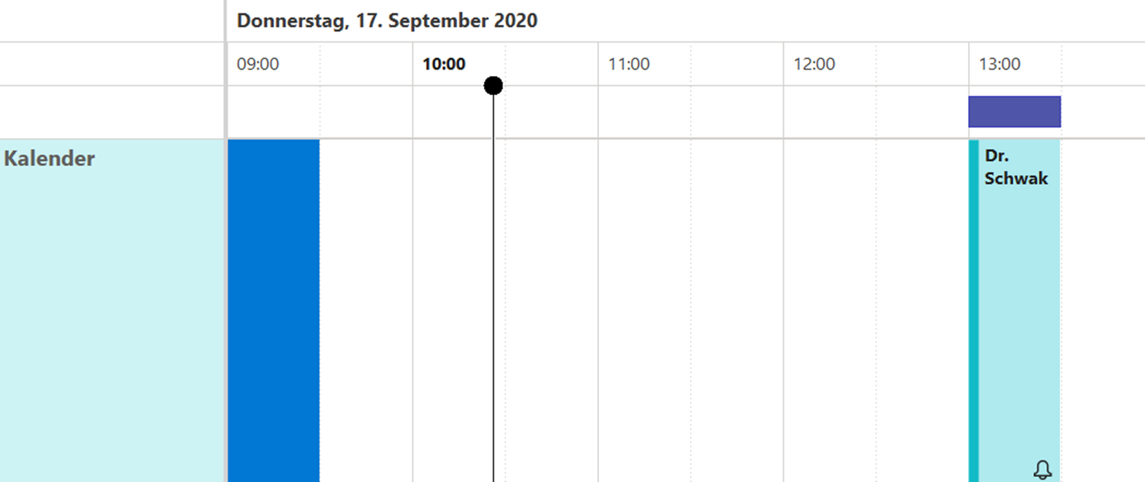 Sie wundern sich über die schwarze Linie im Kalender? Es ist der neue Zeitindikatorbalken, der in einem dicken Punkt endet. Der Balken erstreckt sich ab Wochenanfang bis zum aktuellen Tag und zur Uhrzeit. Am deutlichsten sichtbar ist er in der Wochen- oder Arbeitswochenansicht. In der Tagesansicht verschwindet der Zeitindikator fast, er ist jetzt ein schwarzer Halbkreis links in der Zeitleiste. Die Visualisierung durch den Indikator dient in erster Linie dazu, den Fokus auf das Heute und Jetzt zu setzen. Verschieben oder ausblenden lässt er sich nicht. Wer jetzt experimentierfreudig neben der Linie bzw. auf deren Endpunkt doppelt klickt, erstellt einen neuen Termin. Das funktioniert unabhängig vom Indikator, also auch ohne diesen in älteren Programmversionen, oder weiter weg davon an jeder beliebigen Kalenderstelle.