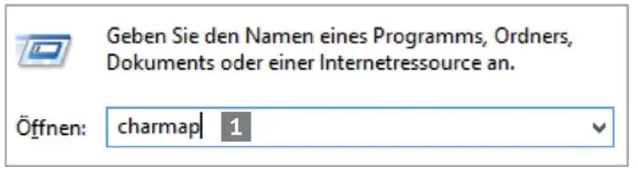 - Drücken Sie gleichzeitig die Windows-Taste + R. Es öffnet sich am linken unteren Bildschirmrand ein Fenster, in das Sie „charmap“ eingeben.