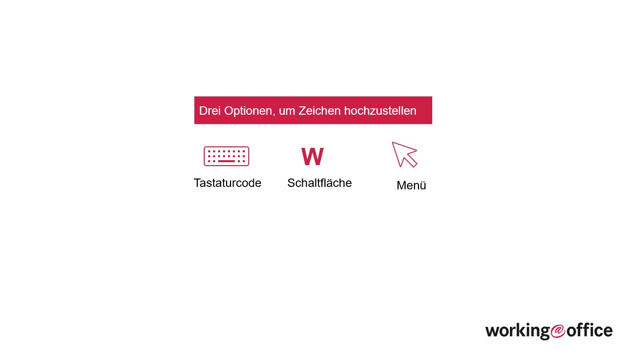 - Anwendungsfälle kennen: Exponenten, Flächenangaben, Zeit-/Fußnoten und Copyright in Office-Dokumenten.