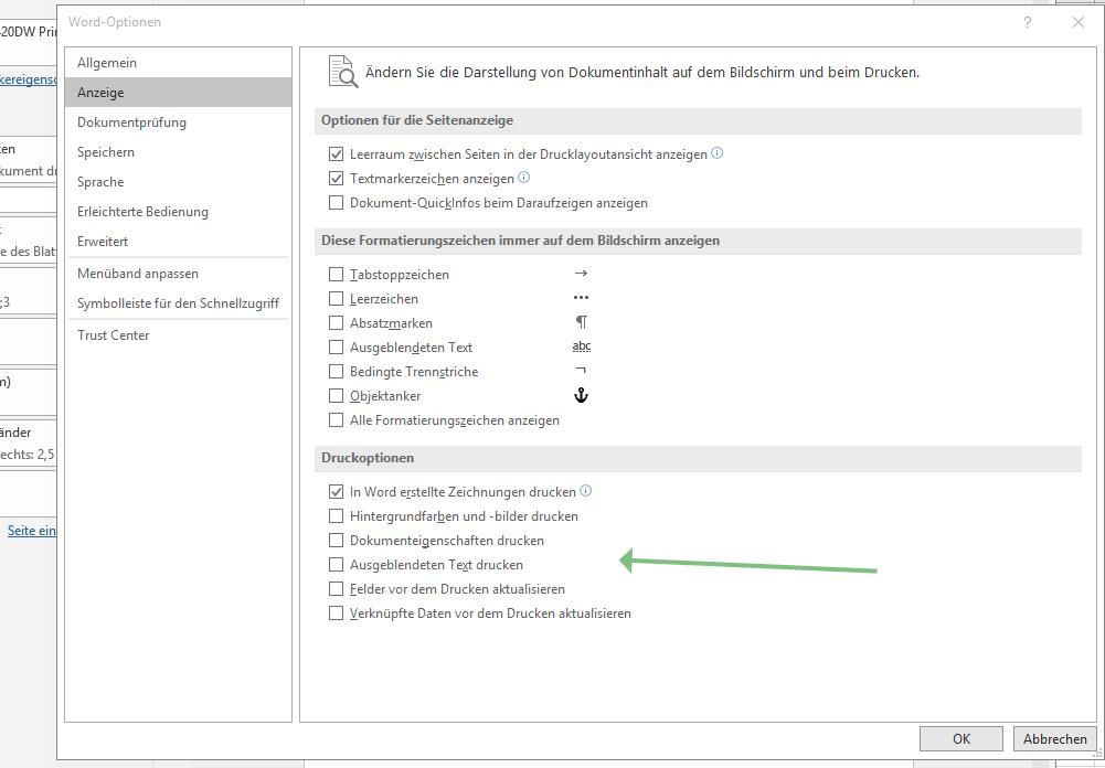 Bevor die Druckoptionen aufgerufen werden, sollten eine grundlegende Kontrolle der Dokumenteneinstellungen erfolgen. Die Druckoptionen bieten dennoch eine weitere Möglichkeit, die Seitenansicht nach Wunsch anzupassen.