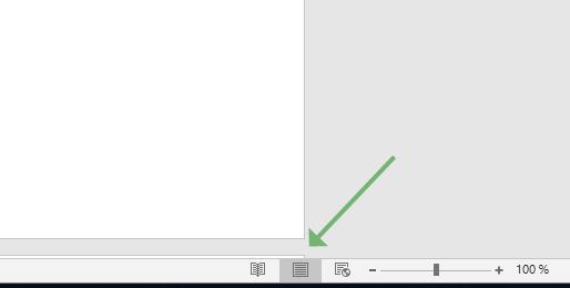 Eine weitere Möglichkeit zur Seitenansicht bietet der Befehl auf der unteren Schnellzugriffsleiste in der Fußzeile. Hier stehen drei Optionen zur Auswahl, die nacheinander die Ansicht der oberen Symbolleiste wiedergeben.
