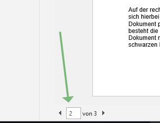 Auf der rechten Seite sollte das zu druckende Dokument als Druckvorschau zu sehen sein. Es handelt sich hierbei um die Seitenansicht für den Druck. Sind Kopf- und Fußzeilen auf dem Dokument platziert, erscheinen auch diese in der Druckansicht. Bei mehreren Seiten besteht die Möglichkeit, über den Befehl Seitenzahl unter der Ansicht beliebig das Dokument mit jeweils einer Seite anzuschauen. Zur Orientierung helfen die schwarzen Dreiecke sowie die danebenstehenden Seitenzahlen.