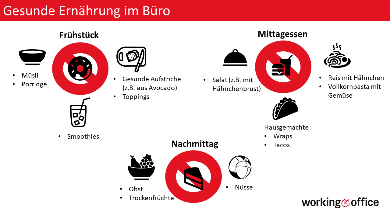 Indem Sie sich also auch auf der Arbeit gesund und ausgewogen ernähren, steigern Sie nicht nur Ihre Produktivität und Leistungsfähigkeit im Büro, sondern auch Ihr persönliches Wohlbefinden auf der Arbeit.