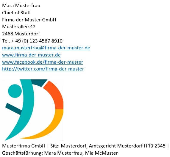 Bei der E-Mail-Signatur zählt nicht nur das Design – sie ist auch aus rechtlichen Gründen Pflicht. Jede geschäftliche E-Mail muss daher Pflichtangaben wie HBR-Nummer, Registergericht, Rechtsform, Unternehmenssitz sowie den Namen des Geschäftsführers oder Aufsichtsratsvorsitzenden enthalten.