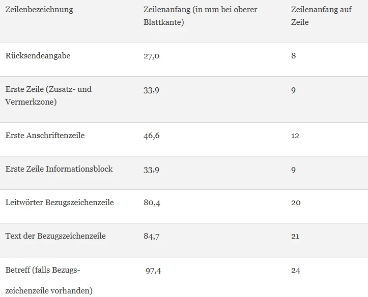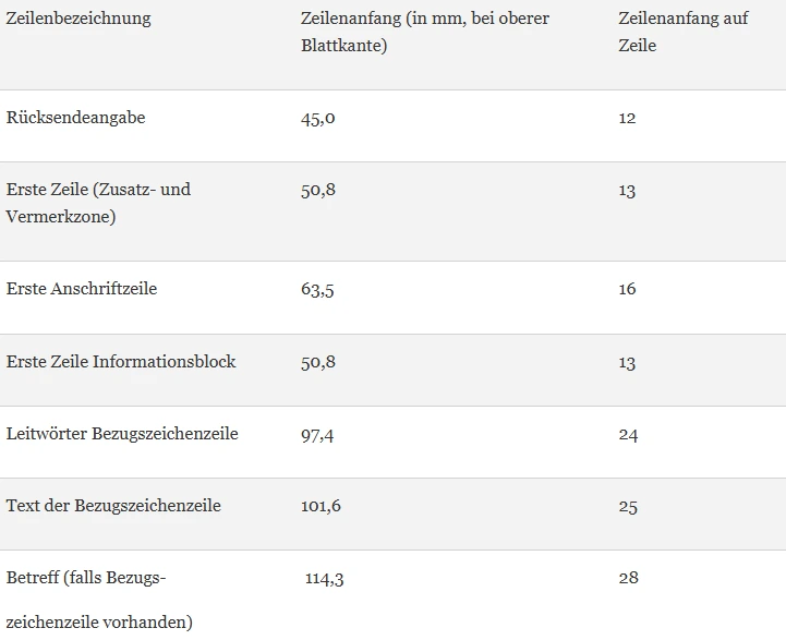 - der Abstand zwischen dem oberen Blattrand und der ersten Zeile beträgt 2 bis 4,5 Zentimeter,