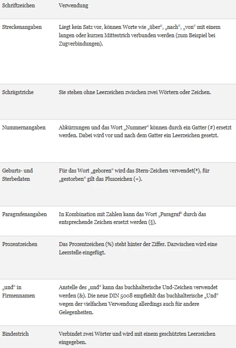 - DIN 5008 – Hier steht ein geschütztes Leerzeichen zwischen „DIN“ und „5008“, sodass diese zusammenbleiben.