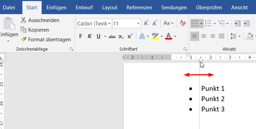 - Klicken Sie im Lineal auf die das Einzug-Symbol und verschieben Sie diesen nach Ihren Vorstellungen