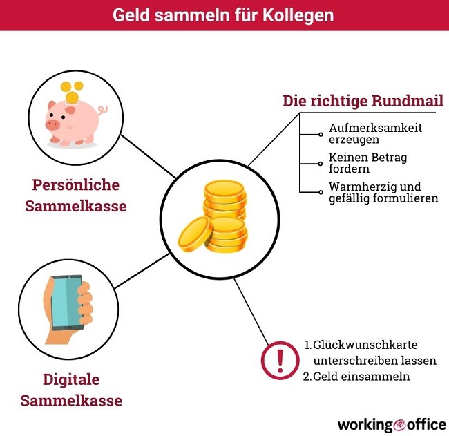 In nahezu jedem Unternehmen und Sekretariat ist es üblich, Geld für Kolleg*innen zu sammeln. Die Anlässe hierfür sind vielfältig. Ein runder Geburtstag, das Jubiläum zum 20. Jahr im Betrieb oder die Geburt eines Kindes sind Ereignisse, für die im Kollegenkreis Geld für ein Geschenk gesammelt werden kann. Ebenso ist die Hochzeit oder der Abschied des Arbeitskollegen ein willkommener Anlass, um Geld im Team einzusammeln.