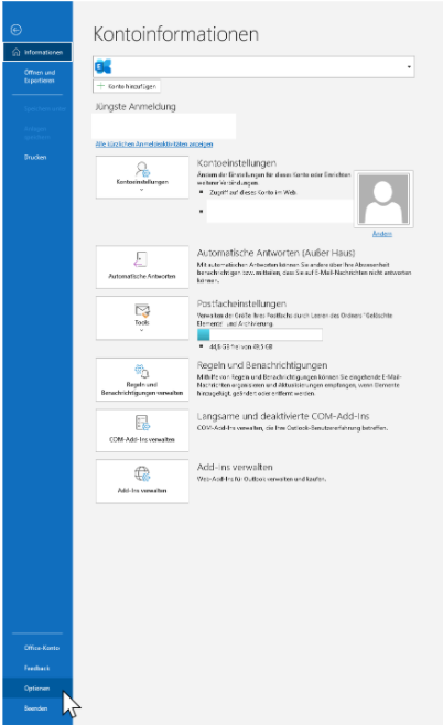 - Wechseln Sie über die Registerkarte „Datei“ in das Menü Optionen