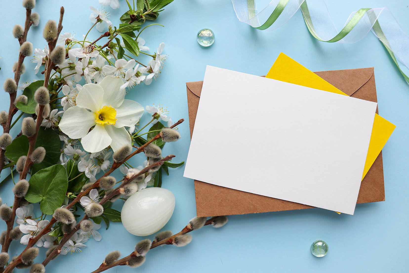 Bei der Wahl der Grußkarte sollten Sie darauf achten, dass diese nicht zu kitschig ist. Ansonsten sind den Motiven, z.B. Osterhasen, Ostereier oder Frühling, keine Grenzen gesetzt. Genauso wichtig ist, dass im Inneren der Karte nicht bereits ein Ostergruß vorgedruckt ist.
