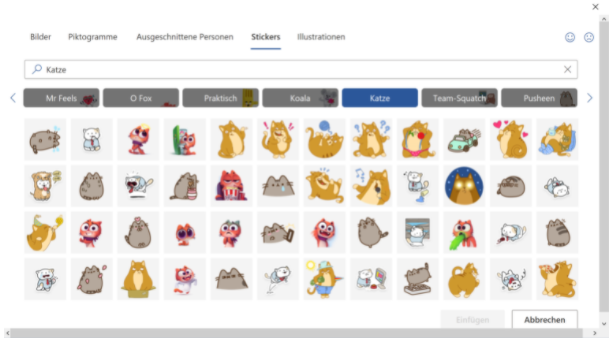 Interessant können ebenfalls die in MS Word integrierten Sticker sein, die vielen Anwendern durch Social-Media-Portale wie WhatsApp, Facebook-Messanger oder Google Hangouts geläufig sind. Auch diese können Grußkarten oder persönliche Briefe verschönern und aufpeppen.