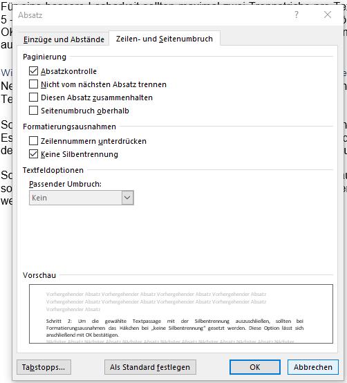 Wie kann ich in Word die Funktion automatische Silbentrennung für einzelne Textpassagen ausschließen?